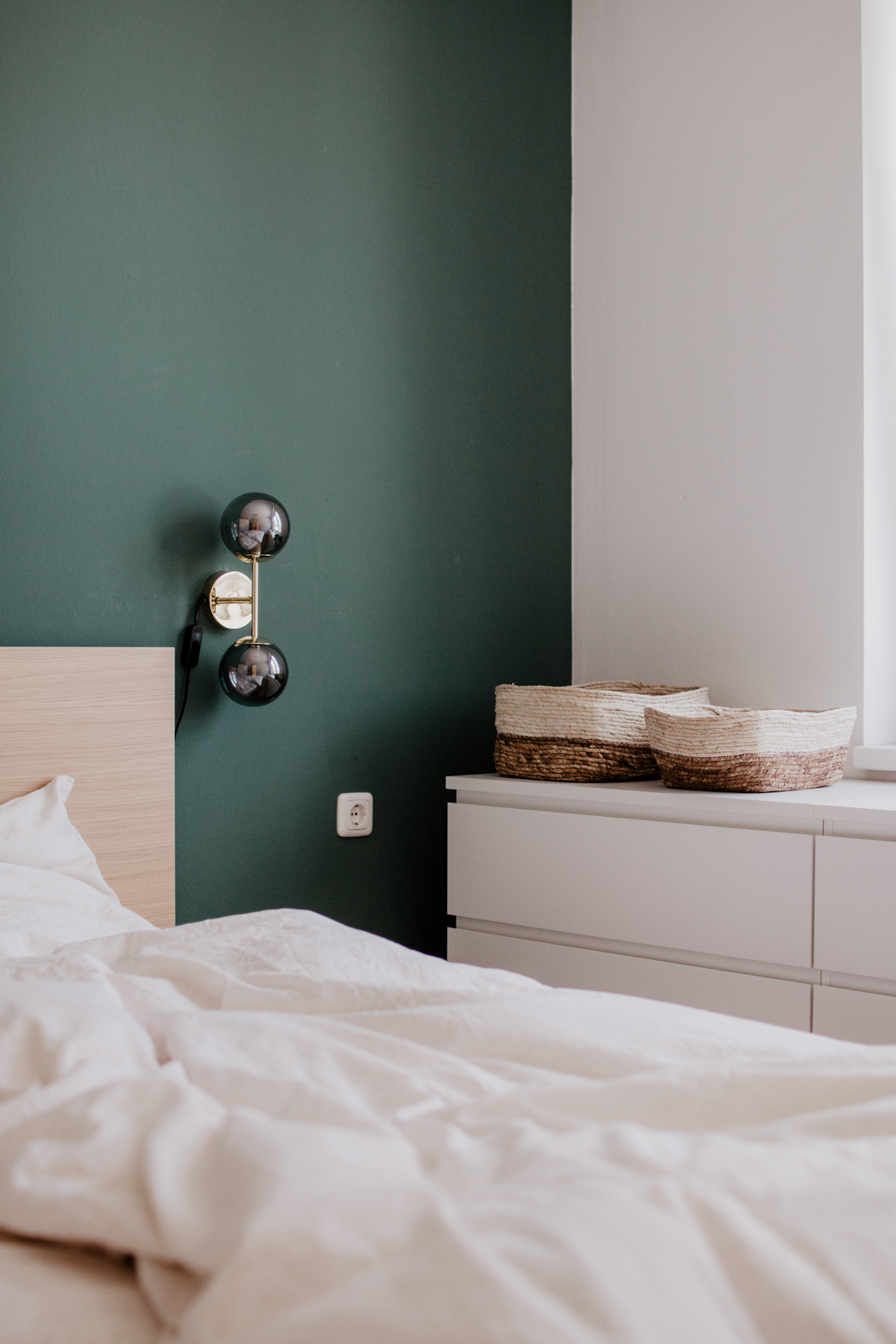 [Werbung] Das Schlafzimmer war nicht nur der erste Raum für den ich wirklich eine Idee/ ein Konzept hatte (siehe Inspo Board Beitrag), es war auch der erste Raum, der als erstes komplett fertig war. Uns war das sehr wichtig – ich kann gut mit einem halb fertigen Wohnzimmer leben, schlafen möchte ich aber in einem gemütlichen Raum bei dem ich mir nicht jedes Mal denke was denn nicht noch alles fehlt. Auf Instagram habe ich euch ja schon ein paar Ausschnitte gezeigt und ihr wolltet unbedingt mehr Details zum Interior und auch zur Farbe haben. Die bekommt ihr natürlich.