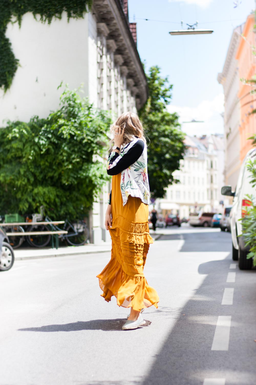 Der nächste kritische Punkt bei Maxikleider wie dieses ist, wie man sie am besten kombiniert. Da es unten doch eher aufträgt und alles andere als dezent ist kann es schnell zu viel nach Ballkleid aussehen wenn man es nicht ein wenig „downdressed“ (verzeiht mir mein ständiges Einenglischen – ich sehe eindeutig zu viele englische Youtube Videos).
